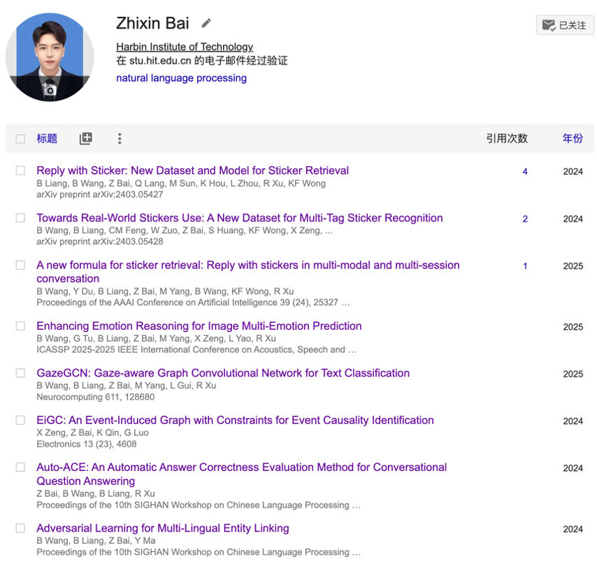 在意识到自己并非绩点选手之后,我果断将重心转向科研工作与学科竞赛,大二时,我主动申请加入哈工深人类语言技术研究团队,并开始与好友组队尝试参与比赛,一路走来我愈发坚定,我选择了一条适合自己的道路。